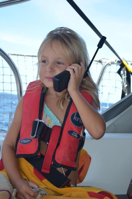 Nina loopt de steigers af (wees gerust, altijd met reddingsvest) op verkenning. Als ik haar vraag wat ze gaat doen zegt ze: “ik ga wandelen en een beetje praten mam. Ik versta er wel niets van, maar ik zeg gewoon, no and yes and me from Belgium.” Et voilà daar gaat ze. Nog maar vijf hé! Ze gaan ook geregeld samen op wandel. De benen strekken tussen het poetsen door.